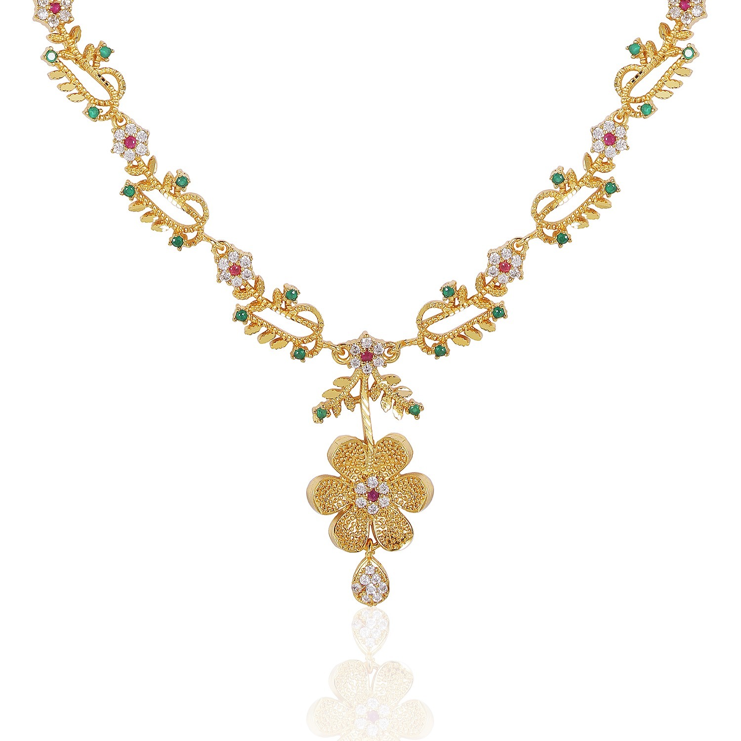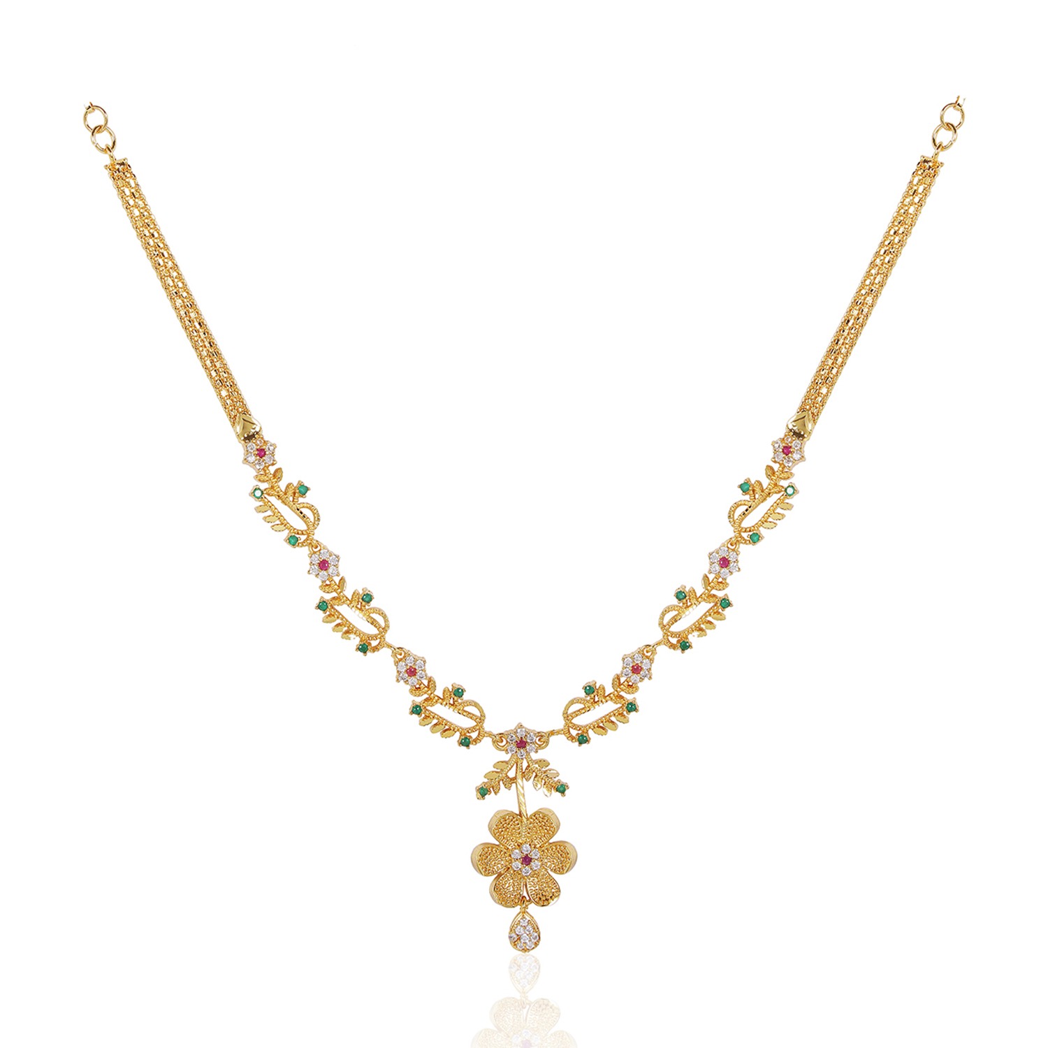 Add a touch of classic charm to your festive look with this beautifully crafted long necklace set. Featuring micro gold plating, it offers an elegant golden glow, perfect for weddings and special events.