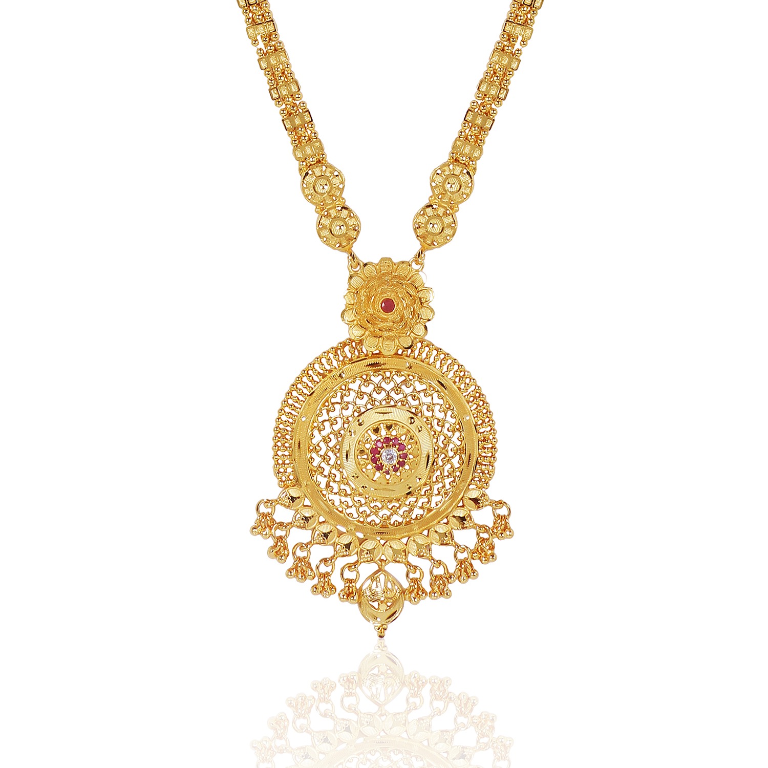 Designed to make a statement, this Royal Radiance long necklace set features exquisite craftsmanship and micro gold plating. Ideal for wedding ceremonies and festive gatherings, it adds a regal touch to your look.